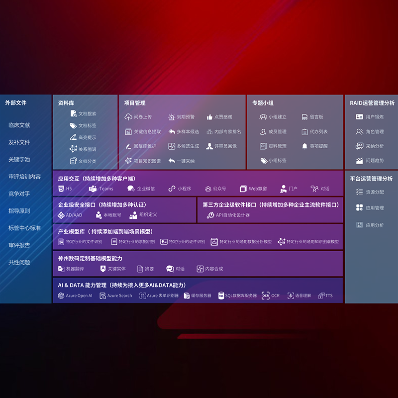 医疗器械产品上市前,,,要熟悉严格与繁复评审标准,,,整理分析监管机构指导文件中的海量信息。。。。企业急需一个智能化解决方案,,,,提升知识管理效率,,,提高评审通过率,,,以提升其市场竞争力。。